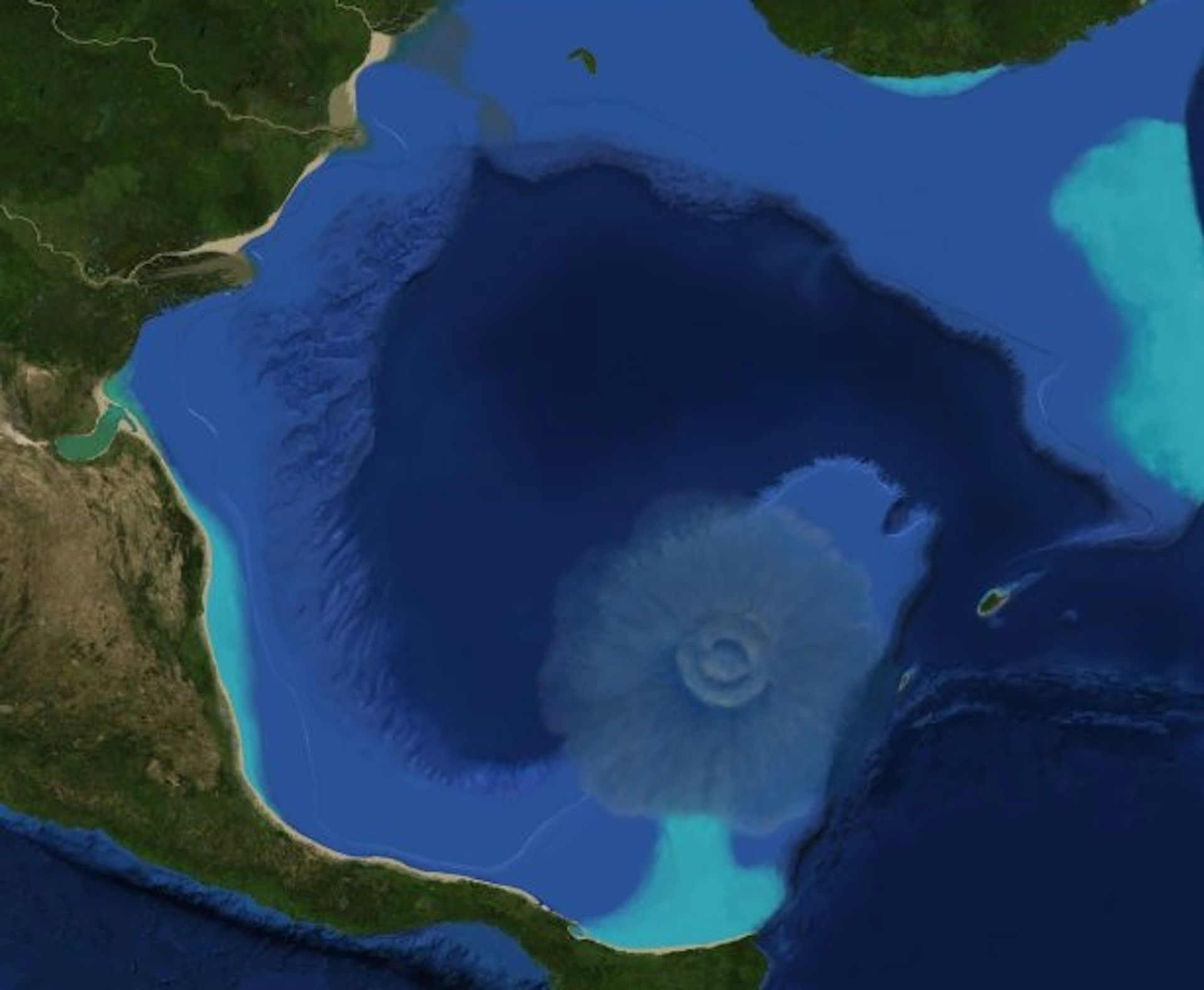 Localização da cratera Chicxulub, no fundo do Golfo de Yucatán, no México |